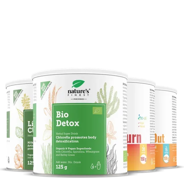 25-dagen detoxprotocol voor de lever Liver Cleanse – Kruidenmix met mariadistel, kurkuma, gember en inuline Ondersteunt de gezondheid van de lever ¹,³,⁴ Draagt bij aan een betere spijsvertering en een normaal functioneren van het spijsverteringsstelsel ³ Voorkomt de ophoping van vet en bevordert de afbraak ervan in de lever ⁴ Helpt de effectiviteit van het immuunsysteem te behouden ⁴ Bio DETOX – Mix van groene superfoods met chlorella, spirulina, gerstgras, tarwegras en lucuma Bevordert de natuurlijke ontgifting van het lichaam ⁶ Helpt het energieniveau te verhogen ⁷ Uitstekende bron van voedingsvezels Rijk aan plantaardige eiwitten Bron van ijzer, vitamine C en chlorofyl Meer dan 4,7 miljoen klanten over de hele wereld.