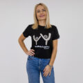 Dit T-shirt is perfect voor dagelijks gebruik. Het is gemakkelijk te combineren met jeans, leggings of rokken en geeft elke outfit een subtiele maar unieke toets.