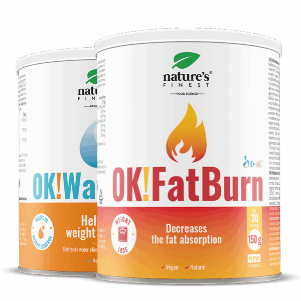Het is klinisch bewezen dat OK!FatBurn met het actieve ingrediënt ID-alG ™ helpt om gewicht te verliezen. OK!WaterOut stimuleert de uitscheiding van overtollig water uit het lichaam en helpt die extra kilo’s te verliezen.