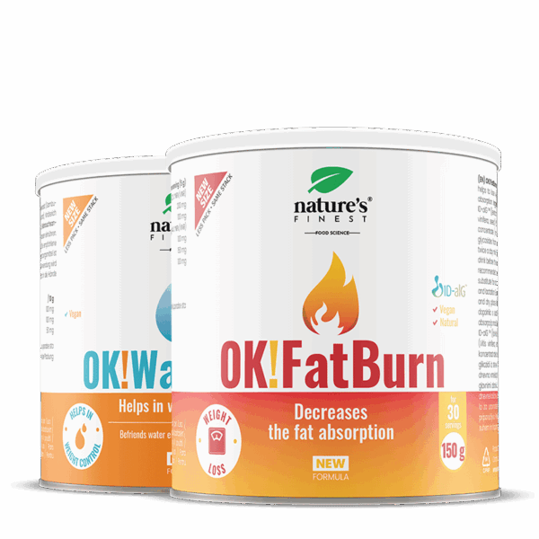Het is klinisch bewezen dat OK!FatBurn met het actieve ingrediënt ID-alG ™ helpt om gewicht te verliezen. OK!WaterOut stimuleert de uitscheiding van overtollig water uit het lichaam en helpt die extra kilo’s te verliezen.