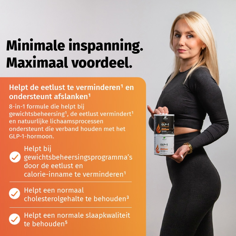 8-in-1 formule die helpt bij gewichtsbeheersing¹, de eetlust vermindert¹ en natuurlijke lichaamsprocessen ondersteunt die verband houden met het GLP-1-hormoon.