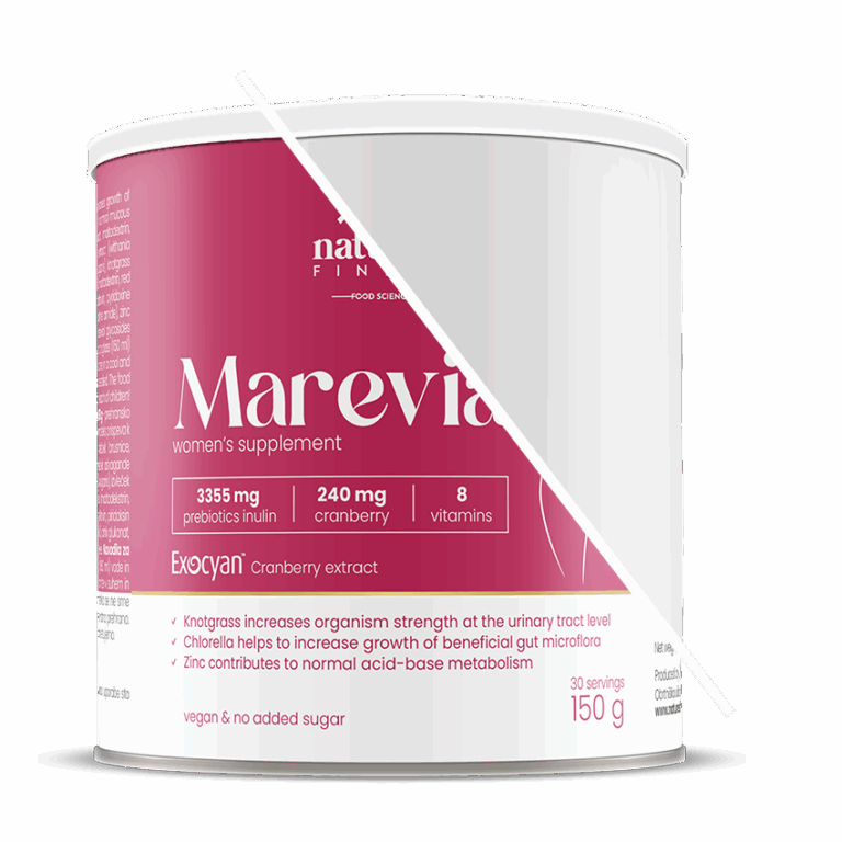 Ingrediënten: Inulinepoeder, ExocyanTM (cranberry-extract, maltodextrine, magnesiumhydroxide), vitamine C (ascorbinezuur), extract van ashwagandha (Withania somnifera, wortel), aardbei-aroma, stabilisator: cellulose, chlorella (Chlorella vulgaris) poeder, extract van duizendknoop (Polygonum aviculare L.), ananas-aroma, rodebietconcentraat (maltodextrine, rodebietpoeder (Beta vulgaris)), B-complex (thiaminemononitraat, riboflavine, pyridoxinehydrochloride, cyanocobalamine, foliumzuur, calcium D-pantothenaat, nicotineamide), zinkgluconaat, extract van kamille (Matricaria chamomilla L.), zoetstof: steviolglycosiden uit stevia.