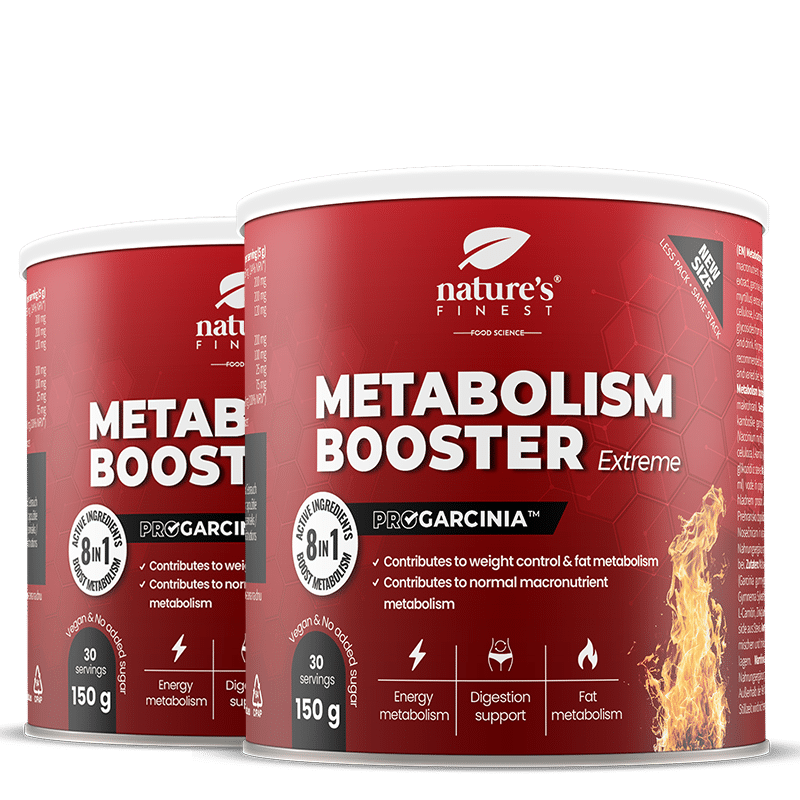 Metabolism Booster Extreme draagt bij aan de energieafgifte bij de metabolisme¹ en aan een normale macrovoedselmetabolisme⁶ met zijn zorgvuldig gekozen ingrediënten. Zink draagt bij aan de normale koolhydraat- en macrovoedselmetabolisme⁶, terwijl bosbessen bijdragen aan de normale metabolisme van koolhydraten, vetten en eiwitten⁷. Guarana wordt traditioneel gebruikt om te helpen bij de vetmetabolisme, wat bijdraagt aan het reguleren van het lichaamsgewicht.
