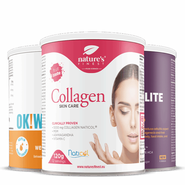 Meng de eerste 15 dagen ‘s ochtends 2 maatschepjes (10 g) OK!WaterOut-drank met ananassmaak in een glas water. Meng vervolgens gedurende de volgende 12 dagen ‘s middags of ‘s avonds 2 schepjes (10 g) SkinCare Collageen in een glas water, geef het 2 minuten de tijd om volledig op te lossen en drink op. De drank heeft een aangename aardbeiensmaak. Met 10 g poeder verbruikt u 5 g Naticol collageenpeptiden.
