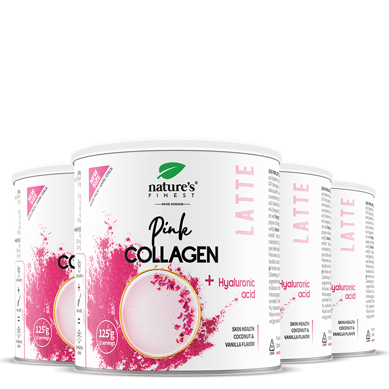 Pink Latte met collageen, hyaluronzuur en ashwagandha helpt verloren collageen te vervangen, zorgt voor een gezondere en soepelere huid, helpt bij het emotionele evenwicht, helpt het lichaam zich aan te passen aan stress en het lichaam voelt energieker.