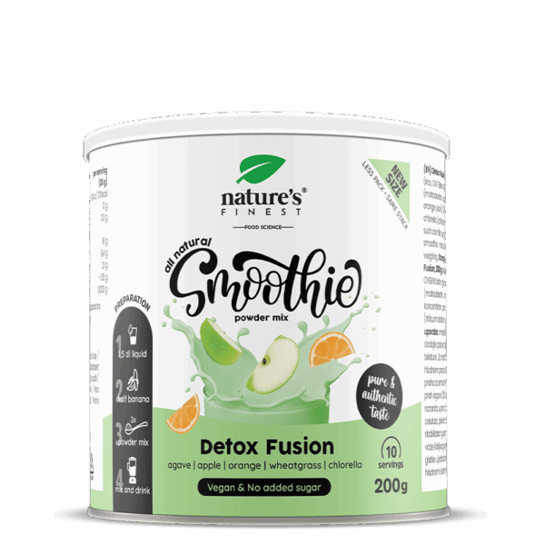 Neem gewoon een glas, vul het met water of plantaardige melk, voeg je favoriete smoothiemix (2 eetlepels) en een halve banaan toe, mix het in een blender en geniet!